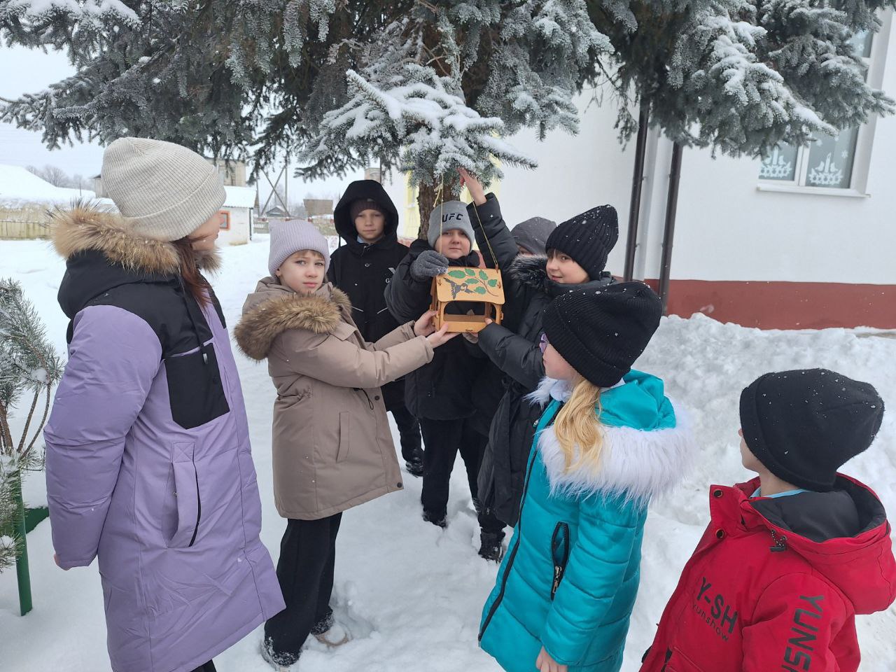 В рамках акции "Зимняя пора добрых дел" в ГУО "Поречская базовая школа Слонимского района" было проведено мероприятие "Покормим птиц зимой".