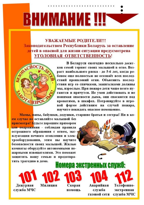 ВЫ НЕСЕТЕ УГОЛОВНУЮ ОТВЕТСТВЕННОСТЬ ЗА ОСТАВЛЕНИЕ МАЛОЛЕТНИХ ДЕТЕЙ В ОПАСНОСТИ!