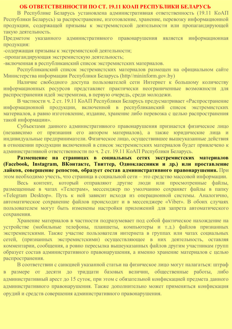 Признаки вовлечения молодежи в деструктивную деятельность праворадикальных группировок (информационный материал, разработанный Министерством внутренних дел Республики Беларусь) Смотреть