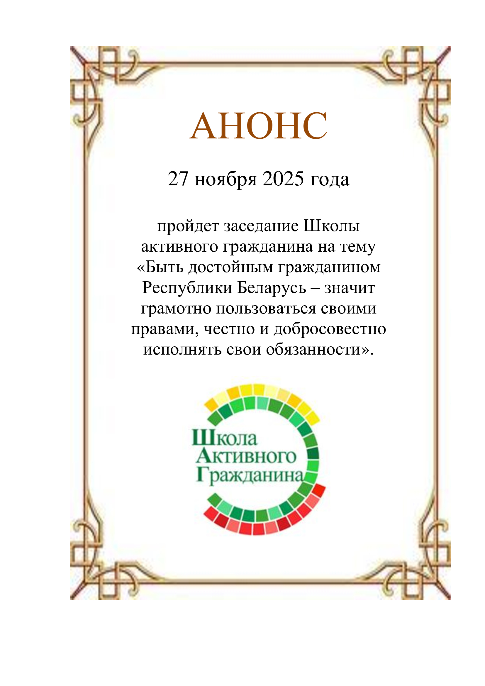 27.11.2025 «Быть достойным гражданином Республики Беларусь – значит грамотно пользоваться своими правами, честно и добросовестно исполнять свои обязанности»