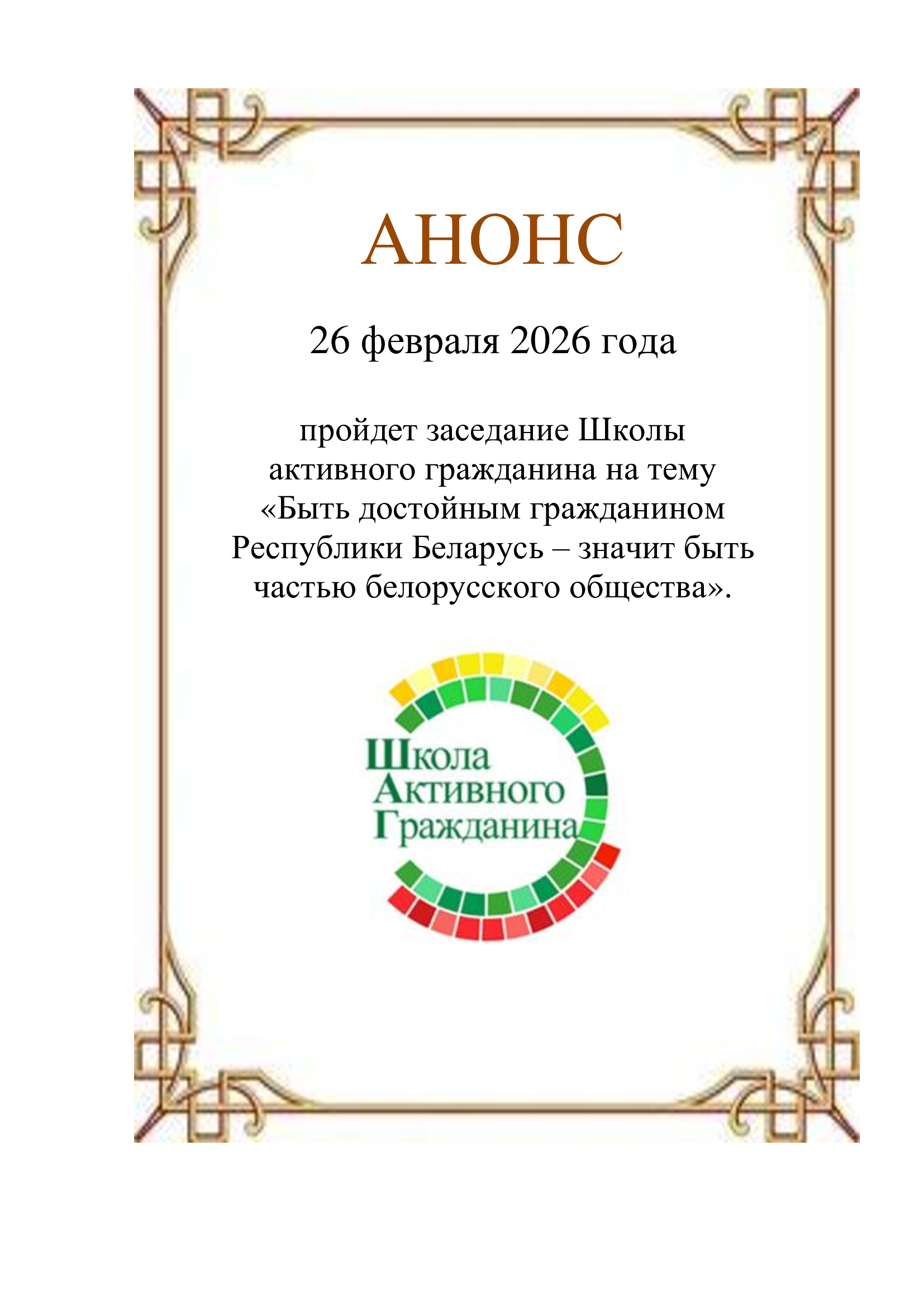 26.02.2026 «Быть достойным гражданином Республики Беларусь – значит быть частью белорусского общества»