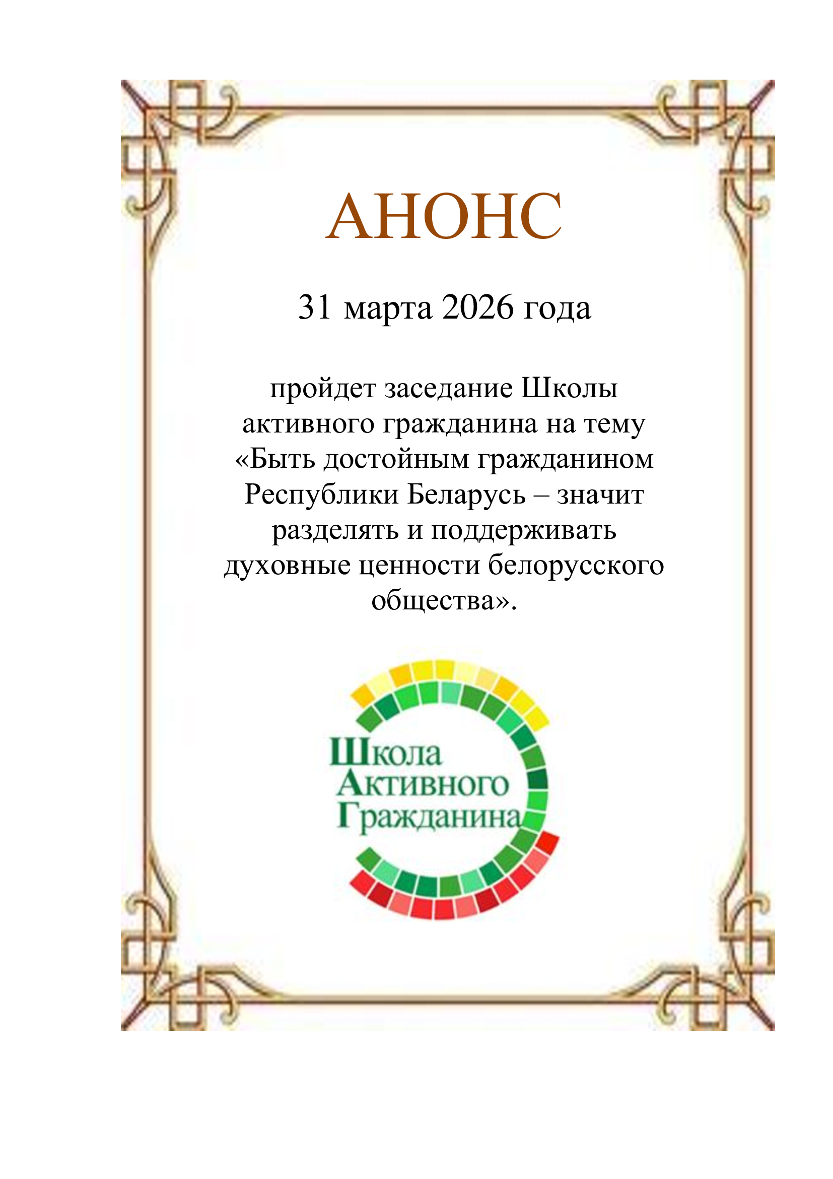 31.03.2026 «Быть достойным гражданином Республики Беларусь – значит разделять и поддерживать духовные ценности белорусского общества»