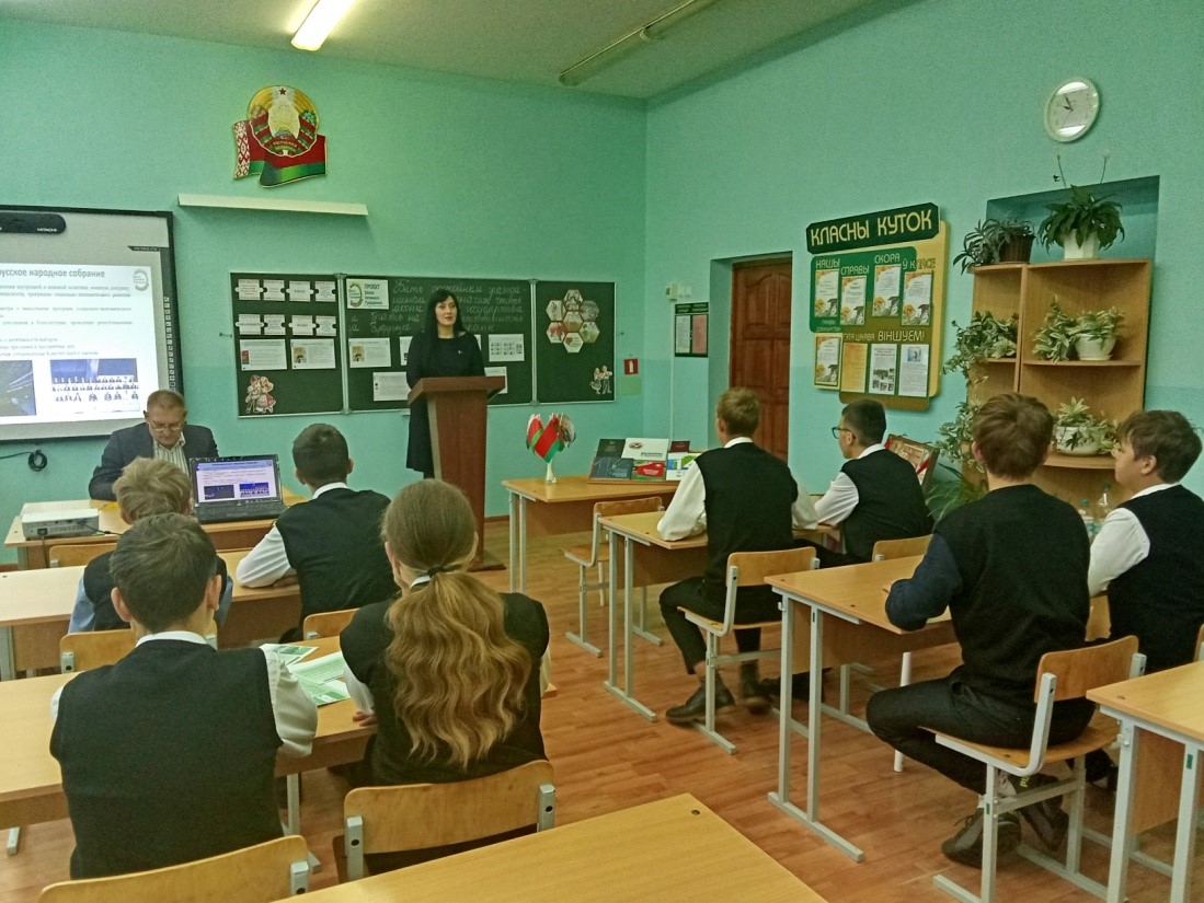 26 лютага для вучняў 8-9 класаў адбыўся адзіны дзень інфармавання ў рамках адукацыйнага праекта "Школа Актыўнага Грамадзяніна" па тэме "Быць годным грамадзянінам Рэспублікі Беларусь - значыць быць часткай беларускага грамадства".