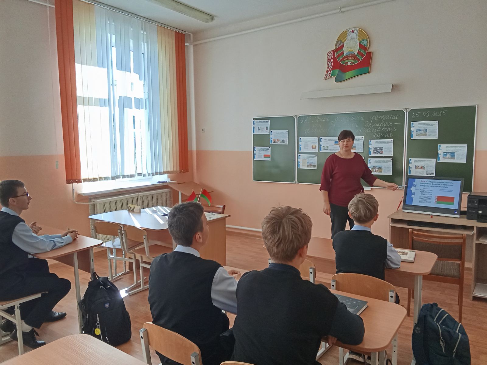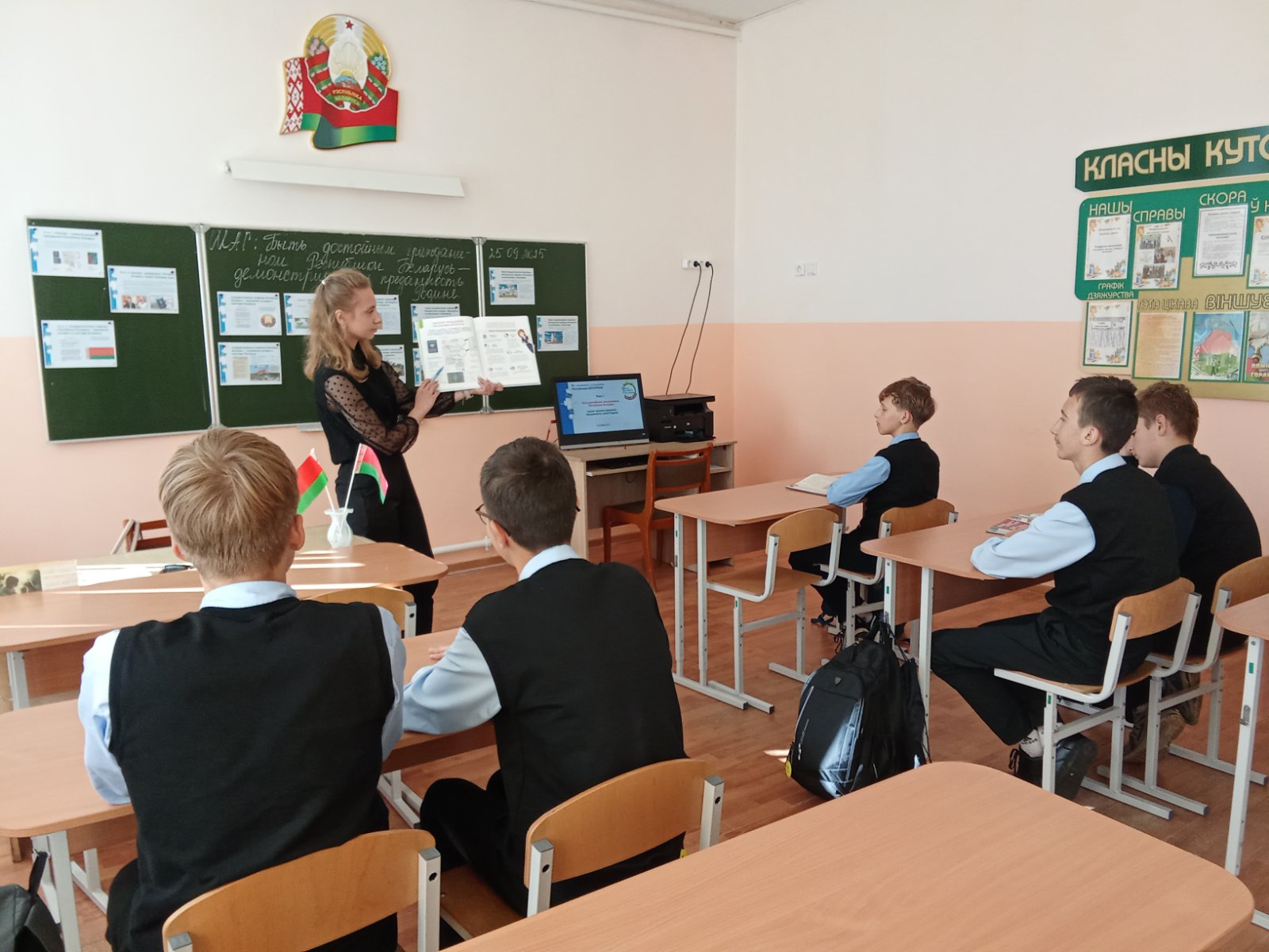25 сентября 2025 г. для учащихся 8-9 классов в рамках информационно-образовательного проекта «ШАГ» прошёл информационный час «Быть достойным гражданином Республики Беларусь – значит демонстрировать преданность своей Родине». Ребята актуализировали знания о паспорте гражданина Республики Беларусь, государственных символах страны и их значении. В ходе беседы обсудили личные качества гражданина Республики Беларусь (трудолюбие, честность, ответственность, любовь к Родине), черты национального характера белорусского народа (патриотизм, любовь к родной земле, ее природе), значимость гражданской позиции каждого человека для развития страны.