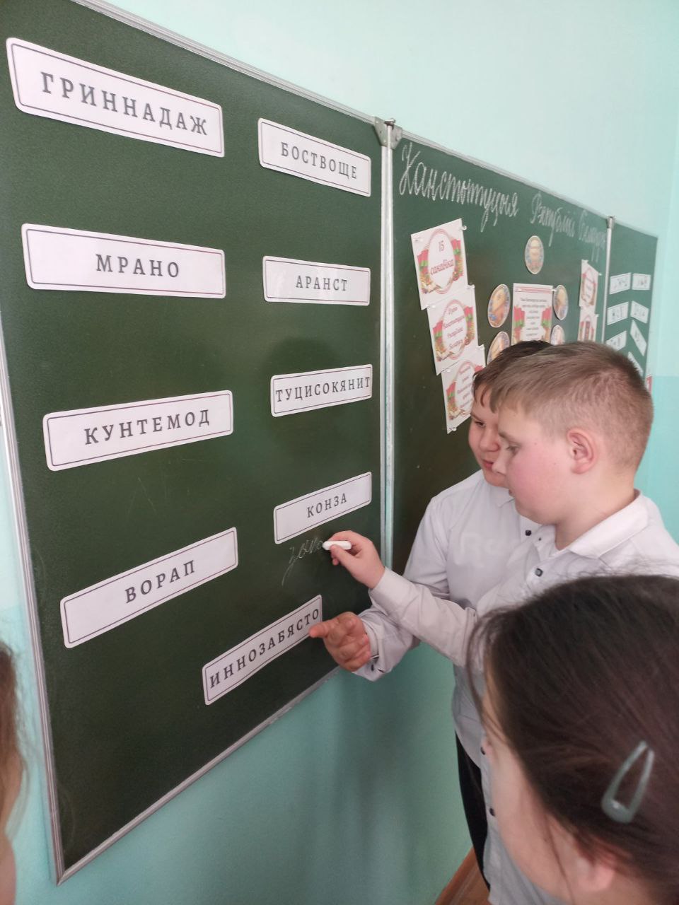 З прывітальным словам выступіла класны кіраўнік 9 класа Кучынская А.У. Яна адзначыла, што Дзень Канстытуцыі - гэта галоўнае дзяржаўнае свята, якое сімвалізуе непахіснасць правоў і свабод грамадзян. Такія мерапрыемствы дапамагаюць падрастаючаму пакаленню ўсвядоміць сябе часткай вялікай і дружнай сям'і – грамадзянамі Рэспублікі Беларусь.