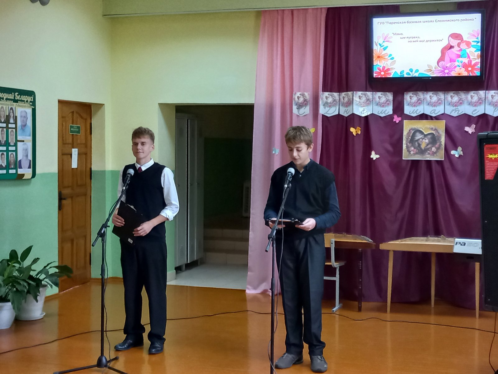 Адмысловае месца сярод шматлікіх свят, якія адзначаюцца ў нашай школе, займае – Дзень маці. Гэта свята, да якога ніхто не можа застацца абыякавым, гэта свята вечнасці: з пакалення ў пакаленне для кожнага чалавека мама – самы галоўны чалавек жыцця! У гэты дзень хочацца сказаць словы падзякі ўсім мамам, якія дораць дзецям любоў, дабро, пяшчоту і ласку.