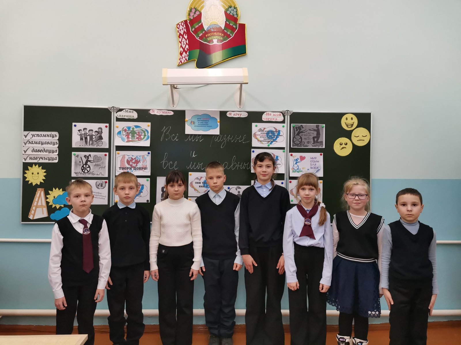 Кожны год 3 снежня адзначаецца Сусветны дзень инвалідаў. У пачатковай школе адбылося мерапрыемства, прысвечанае гэтаму дню. У ходзе мерапрыемства школьнікі даведаліся аб тым, што сярод нас жывуць дзеці з абмежаванымі магчымасцямі здароўя, якія маюць вялікае жаданне дыць, займацца творчасцю, спортам. І ўсе мы павінны сябраваць з імі, дапамагаць у цяжкую хвіліну. Дзень інвалідаў - не святочная дата, а напамін аб тым, што побач з намі жывуць людзі, якім цяжэй, чым ўсім астатнім. І наш абавязак - ім дапамагаць і словам, і справай.