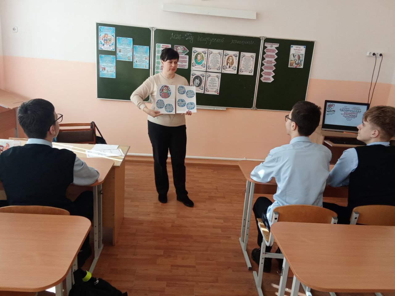У рамках класнай гадзіны вучні склалі воблака слоў аб сучаснай беларускай жанчыне. "Мудрая, працавітая, ласкавая" - напісалі дзеці. Мы пагаварылі аб значнай ролі беларускіх жанчын у розных сферах грамадства.